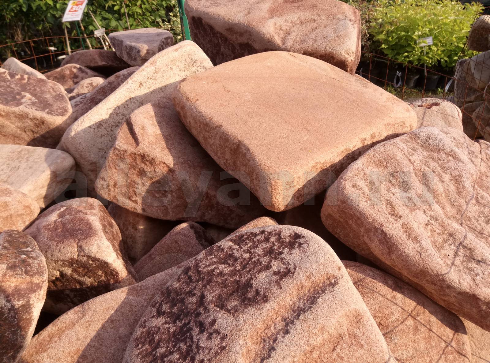 Бут МАЛИНОВЫЙ из песчаника галтованный во Владимире