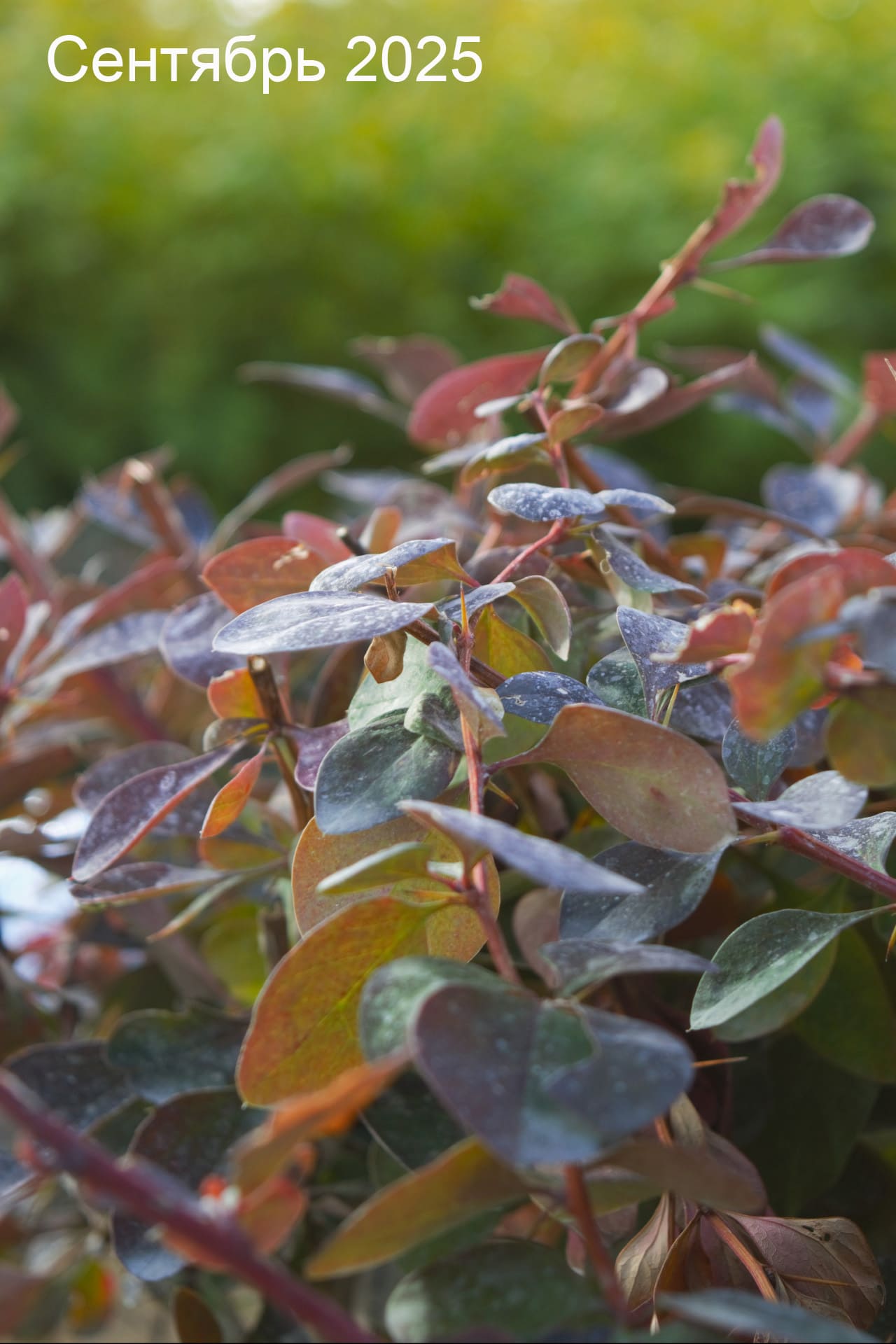 - овальные, плотные, фиолетово-пурпурные с металлическим отливом, на солнце почти черные. Осенью листья окрашиваются в багряные, огненно-оранжевые тона, долго держатся на растении