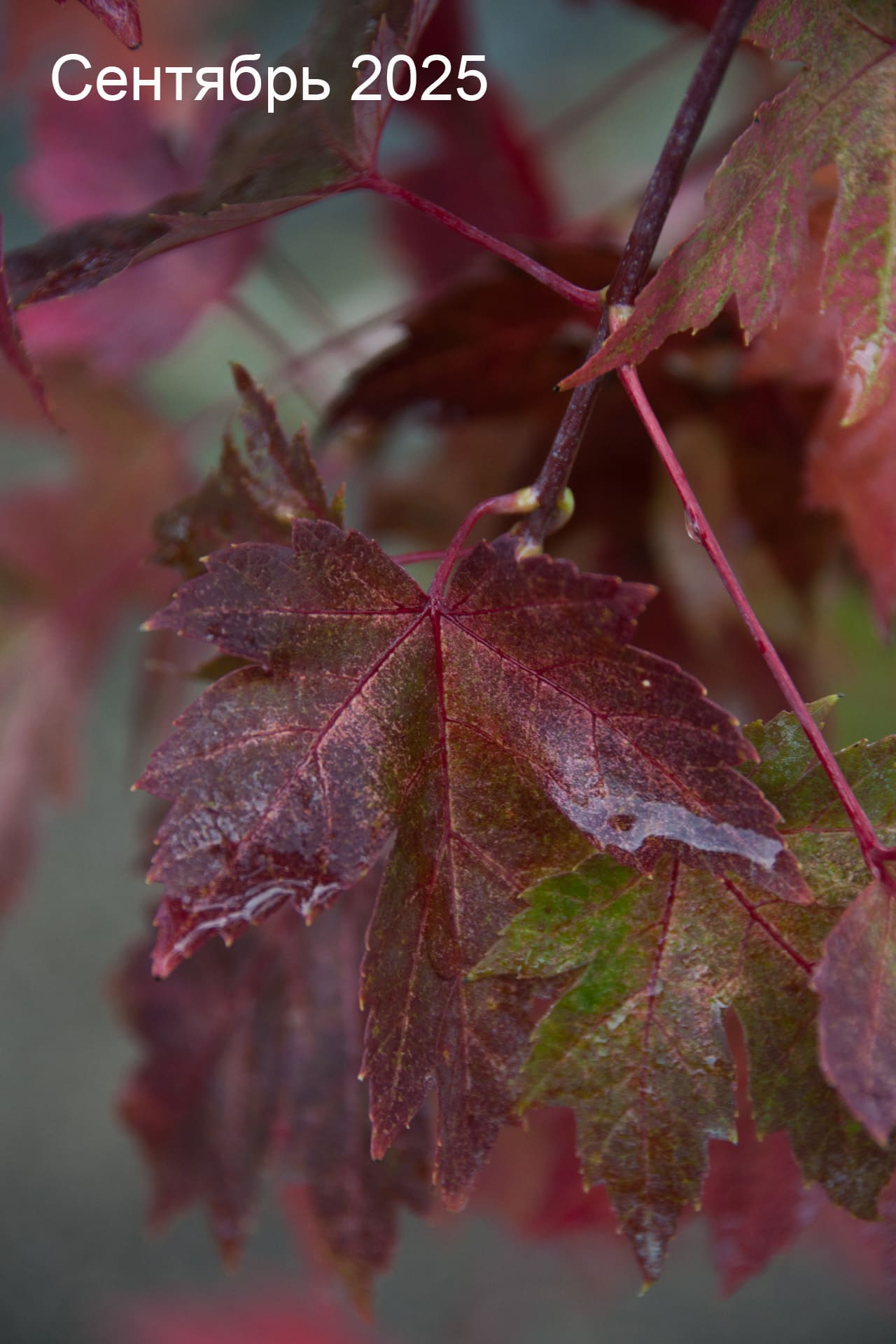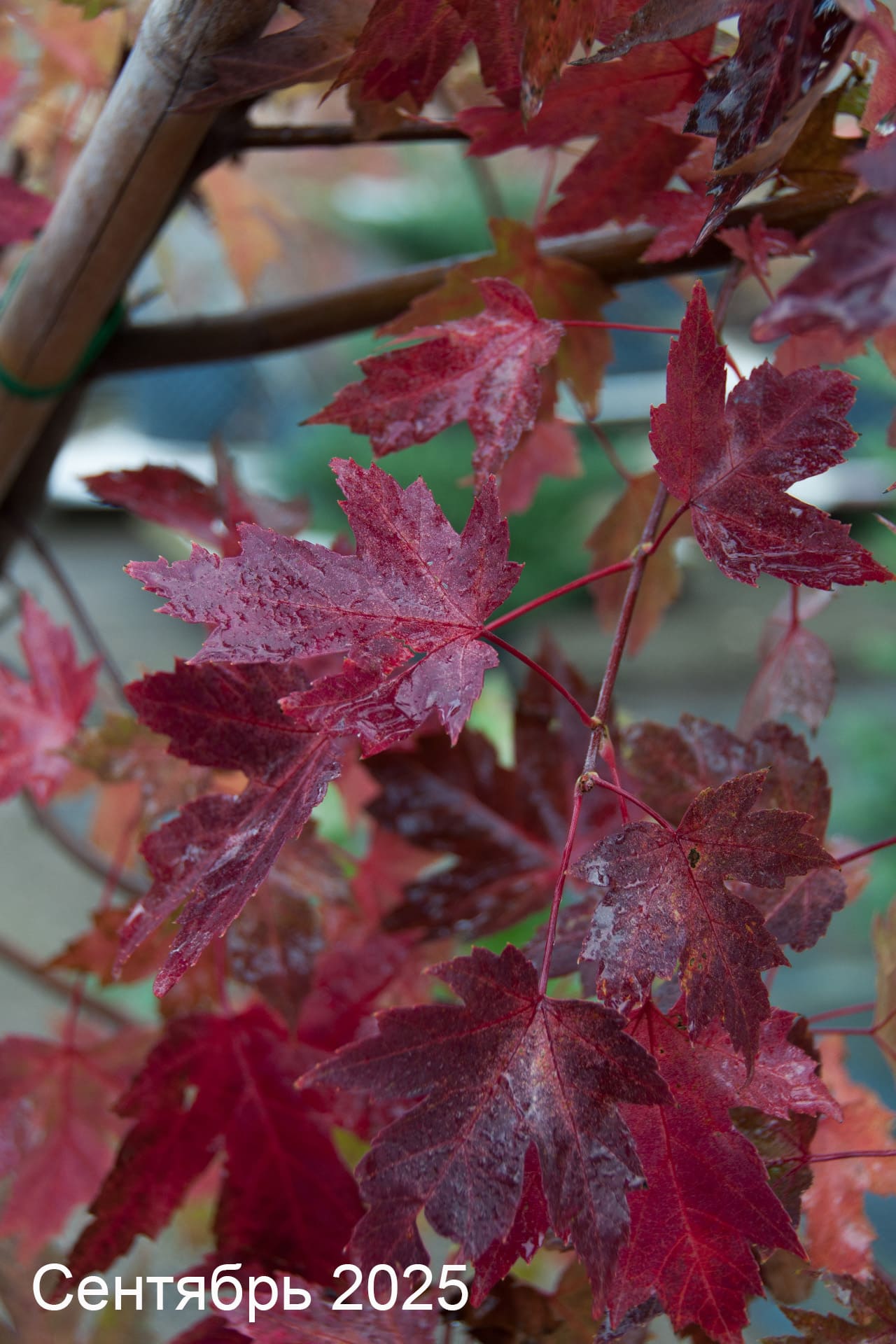 - Трех- или пятилопастные, при распускании бронзовые, летом зеленые сверху и сизые или беловатые снизу, на красных черешках. В осенний период верхняя сторона листа становится оранжевой, красной, нижняя — розовато-серебристой.