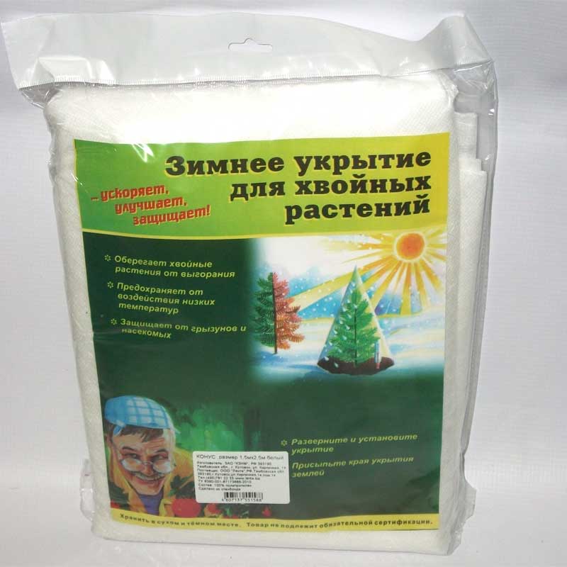 Конус Прекрасно защищает от морозов, солнечных ожогов, создавая объемистое дышащее укрытие с воздушными прослойками. Предотвращает переувлажнение. Отлично пропускает воздух, не отсыревает, быстро сохнет, не гниет. Конструкция легко устанавливается, не требует дополнительных приспособлений