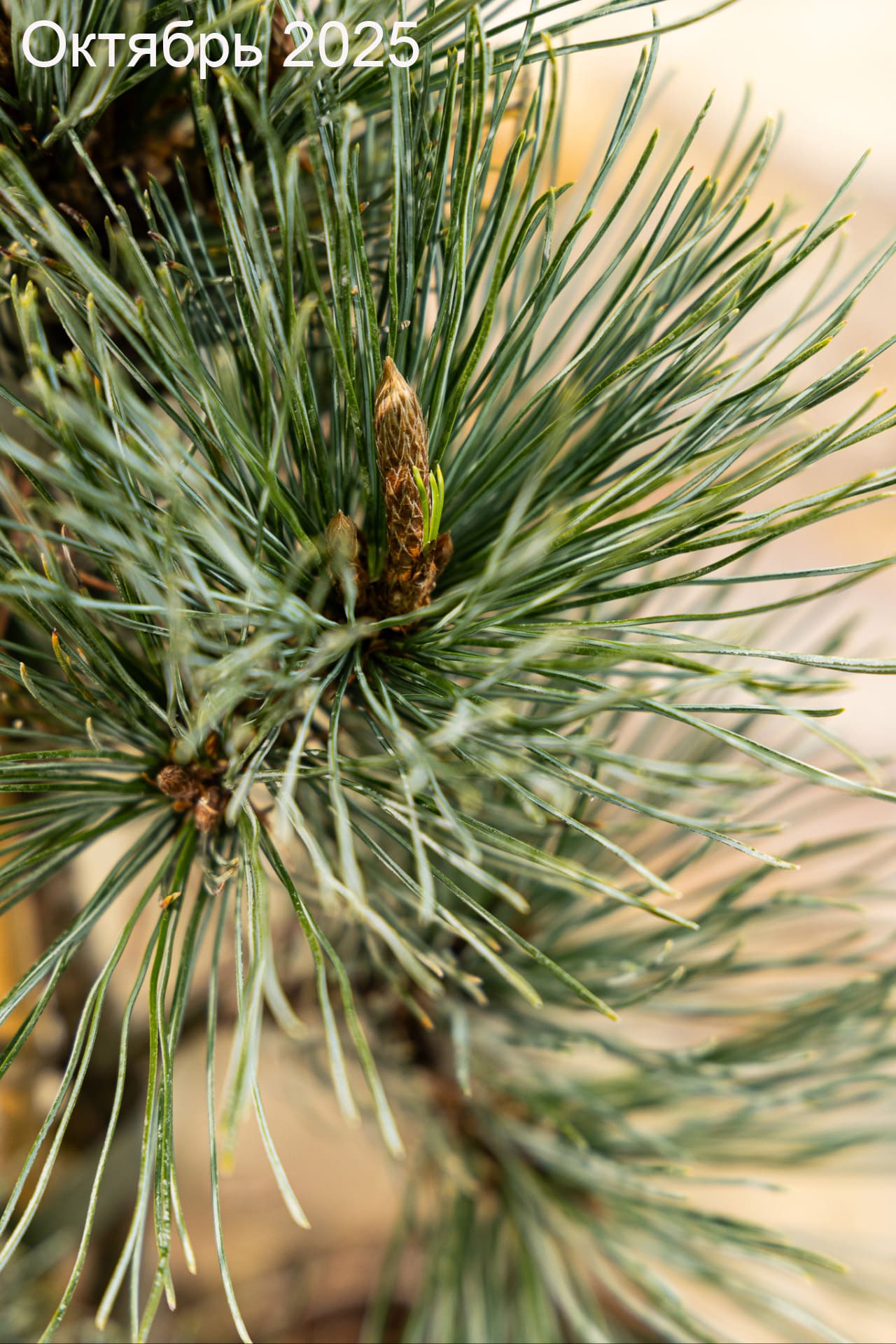 - хвоя тёмно-зелёная, тонкая, трёхгранная, в пучках по 5 штук