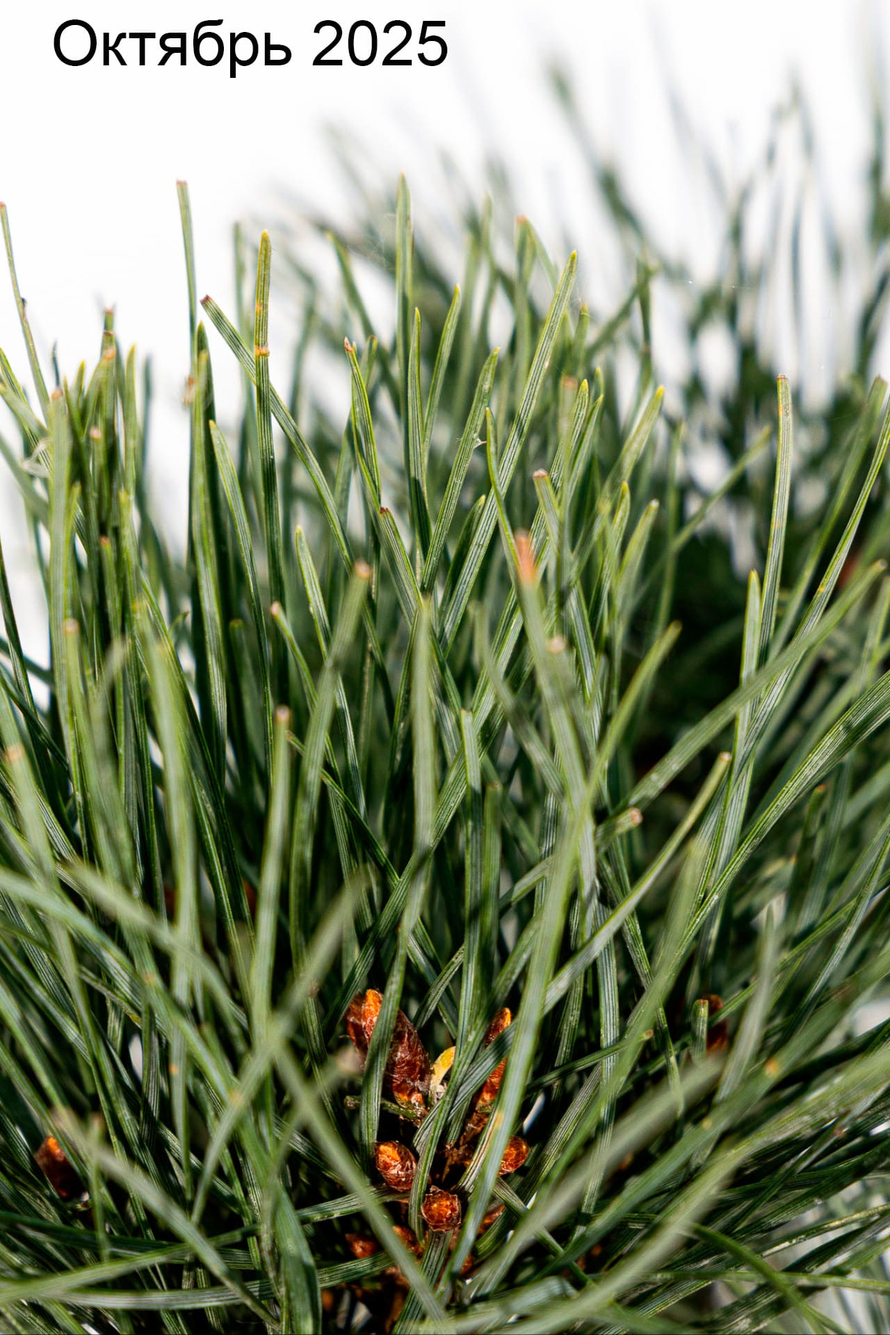 - Хвоя игольчатая голубовато-зеленая, длиной до 4 см, собранная по две хвоинки.