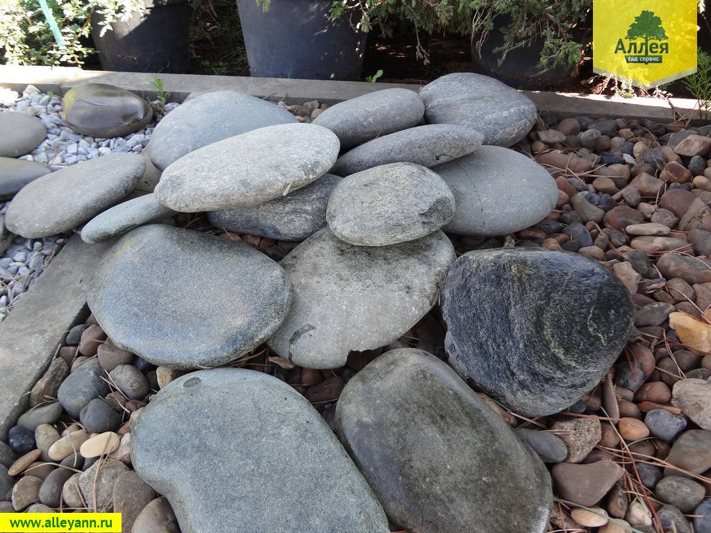 - Отличная возможность создания классических черно-белых композиций и узоров, в сочетании с белой галькой, т. к. обладает однородным цветом близким к черному, сад камней и японский дизайн – отличная составляющая